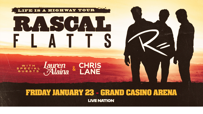 Rascal Flatts Life Is A Highway Tour With special guests: Lauren Alaina and Chris Lane Grand Casino Arena | January 23rd, 2026 CLICK HERE FOR MORE TICKET DETAILS AND TO BUY YOURS
