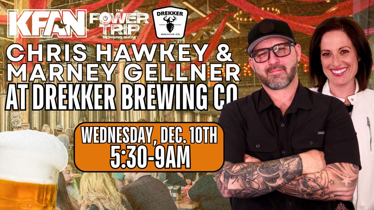 Join Chris Hawkey and Marney at Drekker Brewing in Fargo from 5:30 to 9a on Wednesday, December 10th presented by Bell Bank! Come hang with them as they join the rest of the Power Trip Morning Show LIVE!