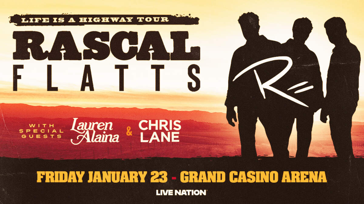 Rascal Flatts Life Is A Highway Tour With special guests: Lauren Alaina and Chris Lane Grand Casino Arena | January 23rd, 2026 CLICK HERE FOR MORE TICKET DETAILS AND TO BUY YOURS