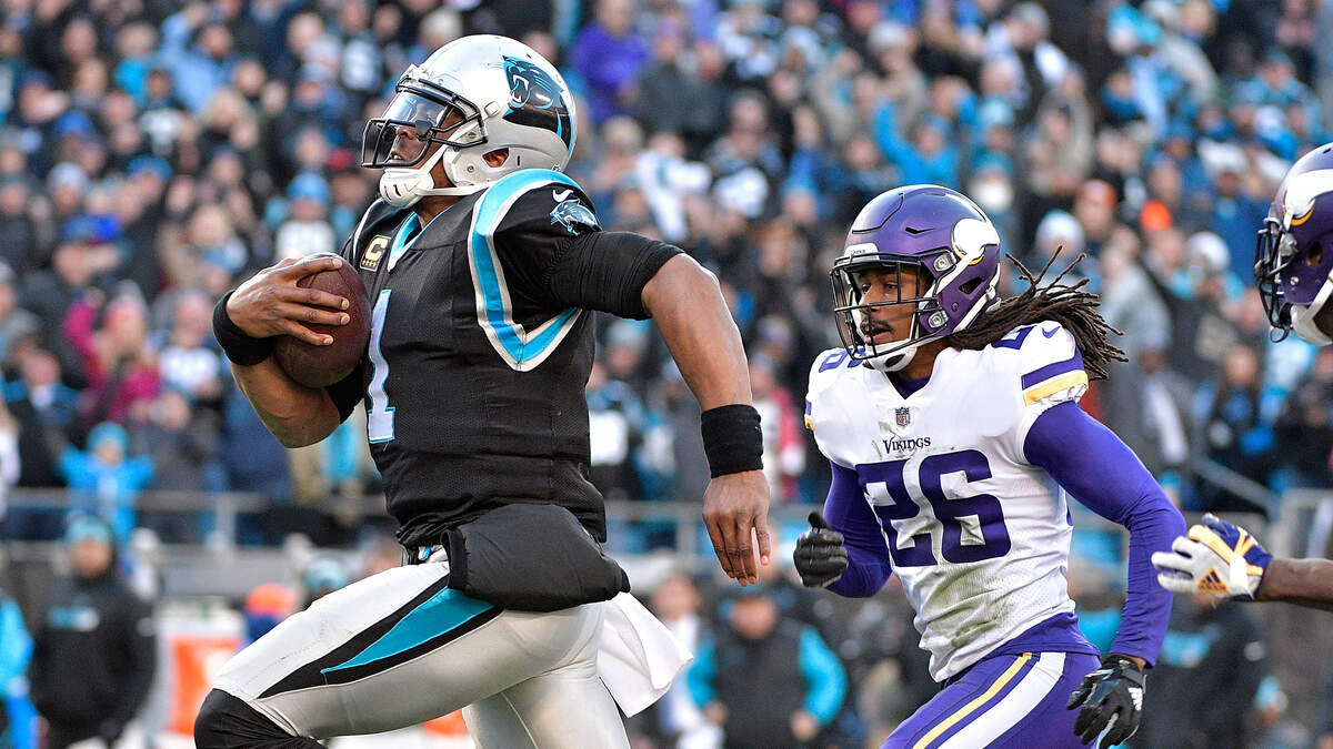 Then it was another head scratching, out of character error that left the Vikings high and dry. With momentum shifting in a big way, Cam Newton started with the ball buried deep in Panthers territory with an option play called. Newton opted to hold on to it and shook Andrew Sendejo worse than I've ever seen...then Newton was gone...at least all the way down to the 6 yard line. A few plays later it was Stewart up and over the top for his third TD of the day in doing so surpassing 100-yards on the day.
