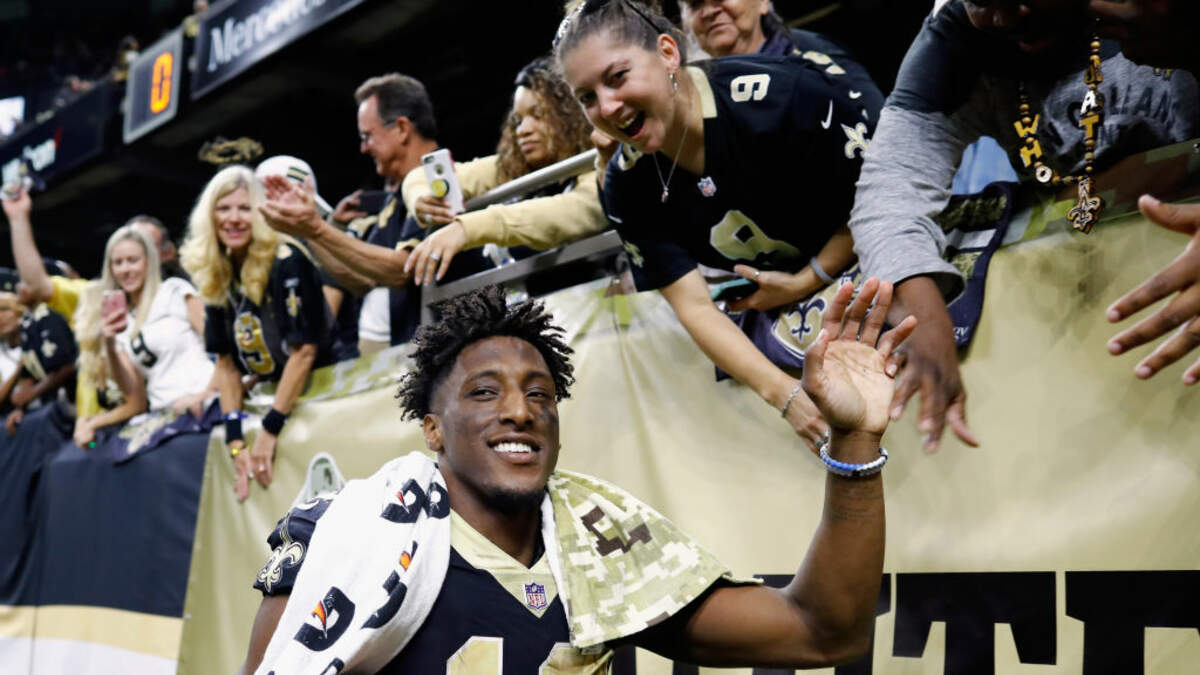 Michael Thomas ran over the the goalpost pad and started digging for what we would learn was a planted flip phone and a tribute for former Saints great Joe Horn!